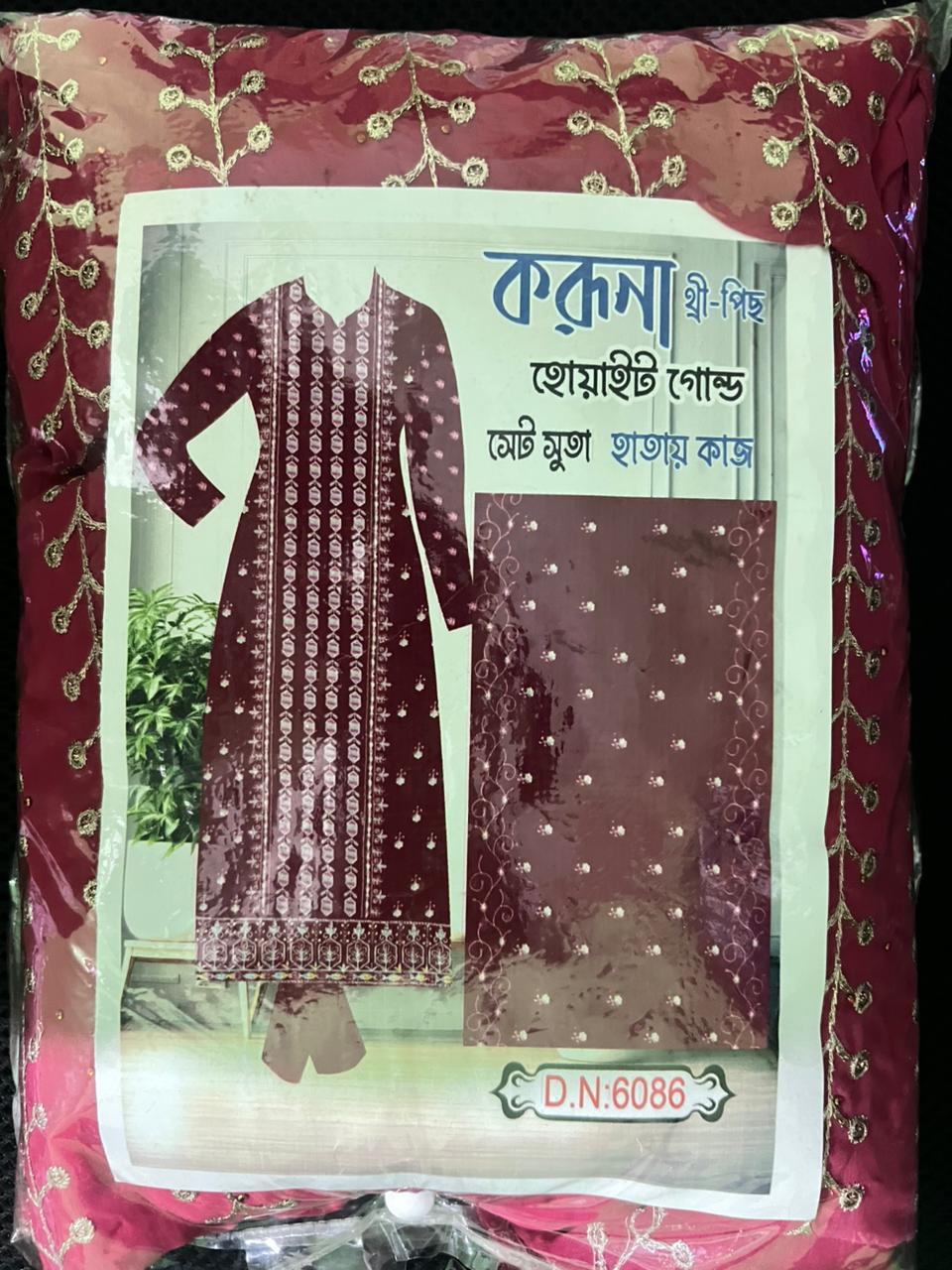 This maroon gown is crafted from soft crinkle cotton georgette, offering beautiful movement and a luxurious drape. The digital-printed body is paired with a sequence-worked yoke, adding festive sparkle and depth. Designed with a huge flared silhouette, the ensemble is completed with a matching dupatta, making it perfect for celebrations, evening events, and ethnic occasions.